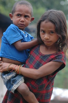 Now, like so many East Timorese, he and his family await better times. Although grateful that his children can go to school, and that there is enough (just) to eat, Boromeo is poor. There are no books, toys, dolls or games in the family home. Erica carries her younger brother, three-year-old Jaimito, around on her hip, and occasionally, for fun, climbs trees – “She’s very naughty,” says her mother. A 16-year-old girl, Clara, helps Filomena with the housework in return for her meals.