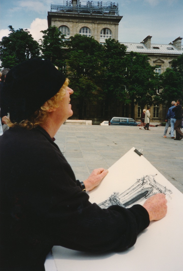 Brett Whiteley sketching in Paris, 1989. Image courtesy of Brett’s sister, Frannie Hopkirk.