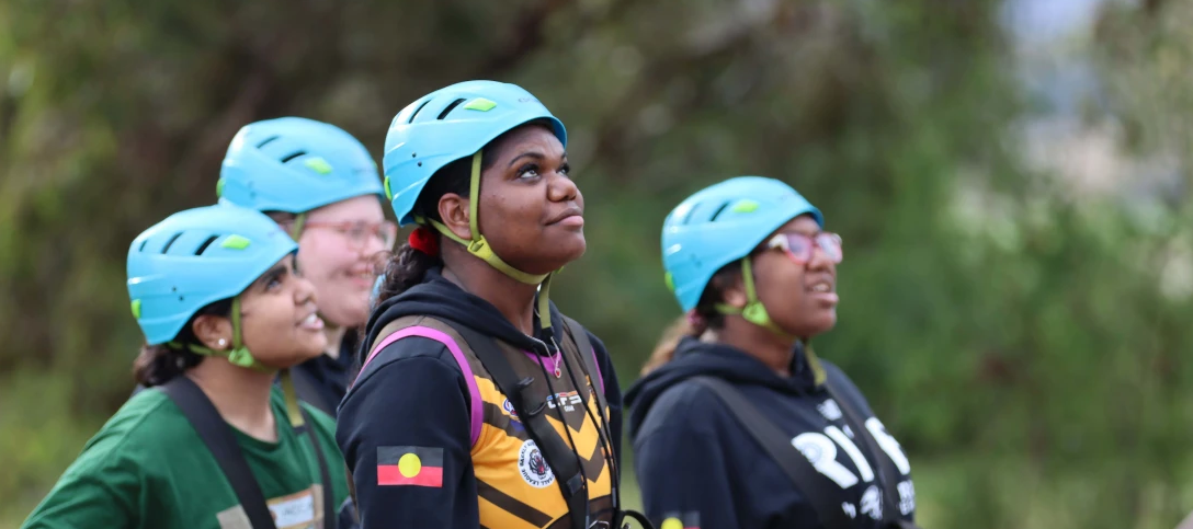 Taking part in the high ropes course in La Trobe’s RISE program “On Country” activities for Indigenous students, designed to promote team building.