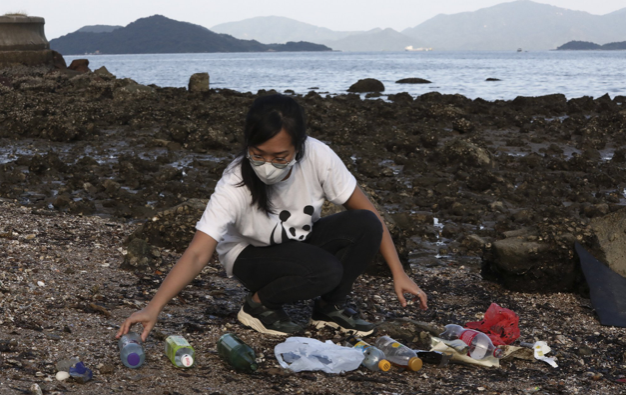 June Wong So-kwan picks up plastic takeaway cups and boxes, plastic bottles, and supermarket plastic wrappings and containers on her regular rubbish collection trips to Hong Kong’s beaches. “When I do beach clean-ups in Hong Kong I find a lot of these kinds of wrappers, the pre-pack containers,” she says. “This is what you can usually find in the supermarket. I think it’s a very big issue.”